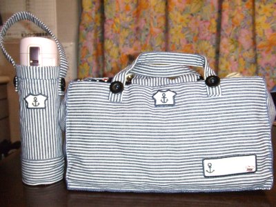 もう1つの 左側は スリムな水筒いれに 手付きのカバーを作製して アップリケを付けてみました。