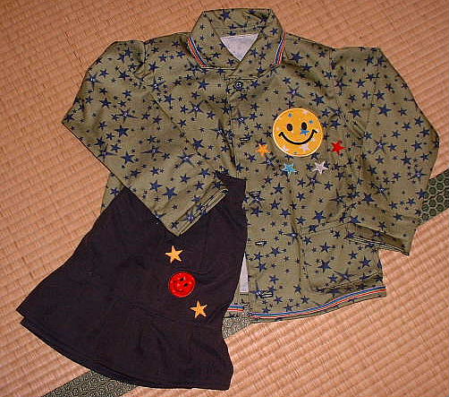 スカートは無地の生地にワンポイントをつけただけで既製品の