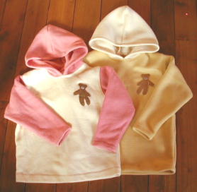 兄・妹の色違いパーカーにくまちゃんのワッペンを付けました。
