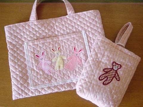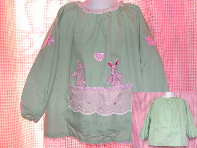 (^o^) 可愛いの大好きの娘の入園準備中です。出来上がりを見て「かわいい♪気にいった!」って言ってくれました。スモックのポケットからクマちゃんを出したかったのでこのアップリケに出会えて出来ばえはともかく満足しています。