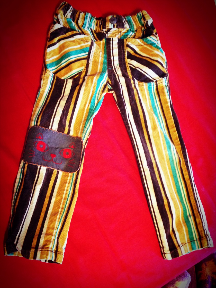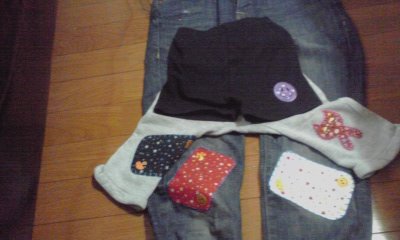 今回は次女のズボンにスマイルのひざあてと猫のワッペン(少し穴が空いてたのでひざあて代わりに)